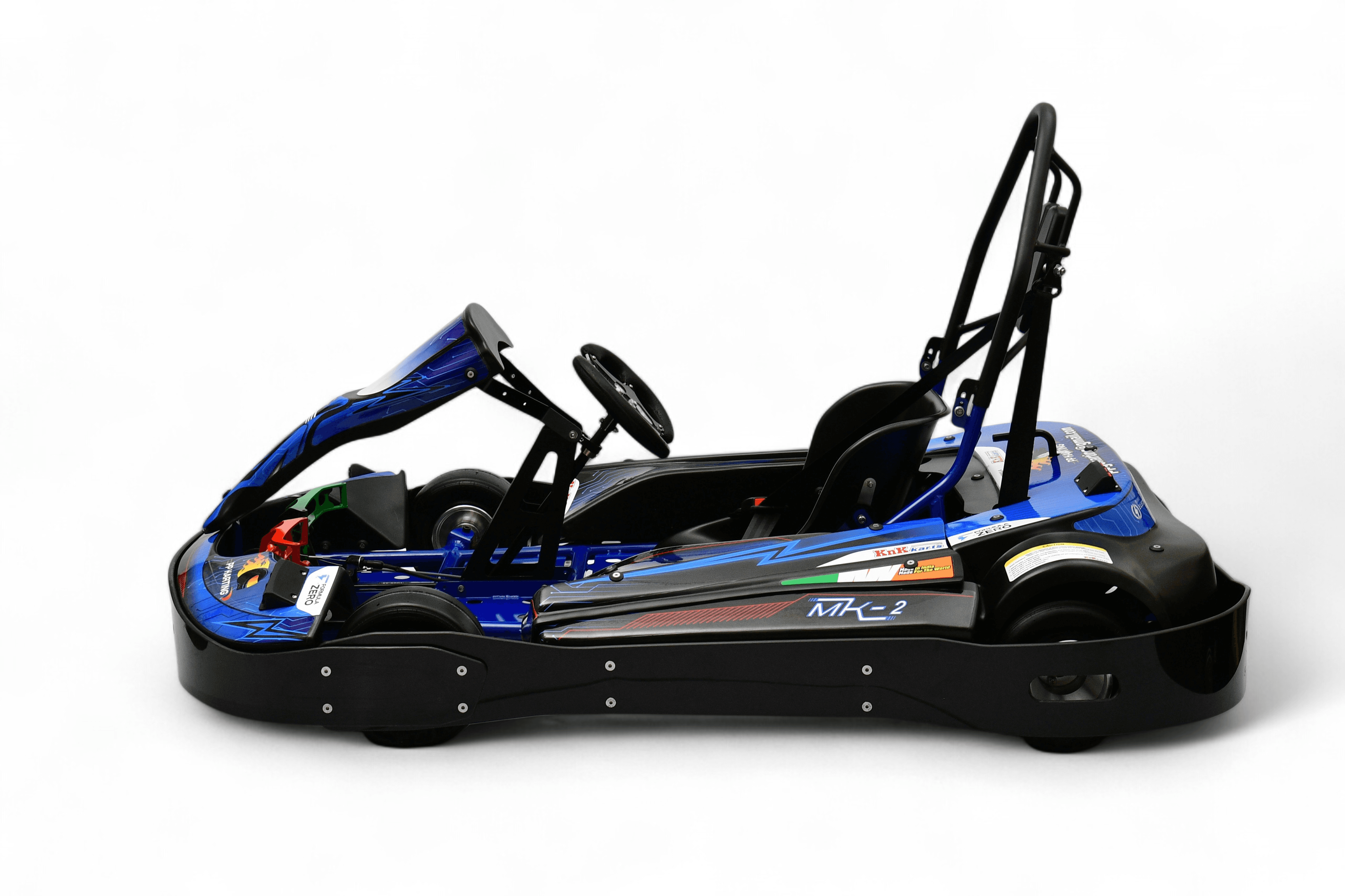 Built for tracks under 300 meters and suitable for ages 12 and above, the MK2 combines practicality with performance. Delivering 3.5 kW of power, it runs for up to 50 minutes on a single charge and recharges in just 90 minutes, thanks to its efficient 1.5 kWh battery. Weighing 130 kg with an ideal 50:50 weight distribution, the MK2 offers excellent handling and stability—perfect for commercial circuits seeking dependable electric karts that provide maximum fun with minimal running costs.