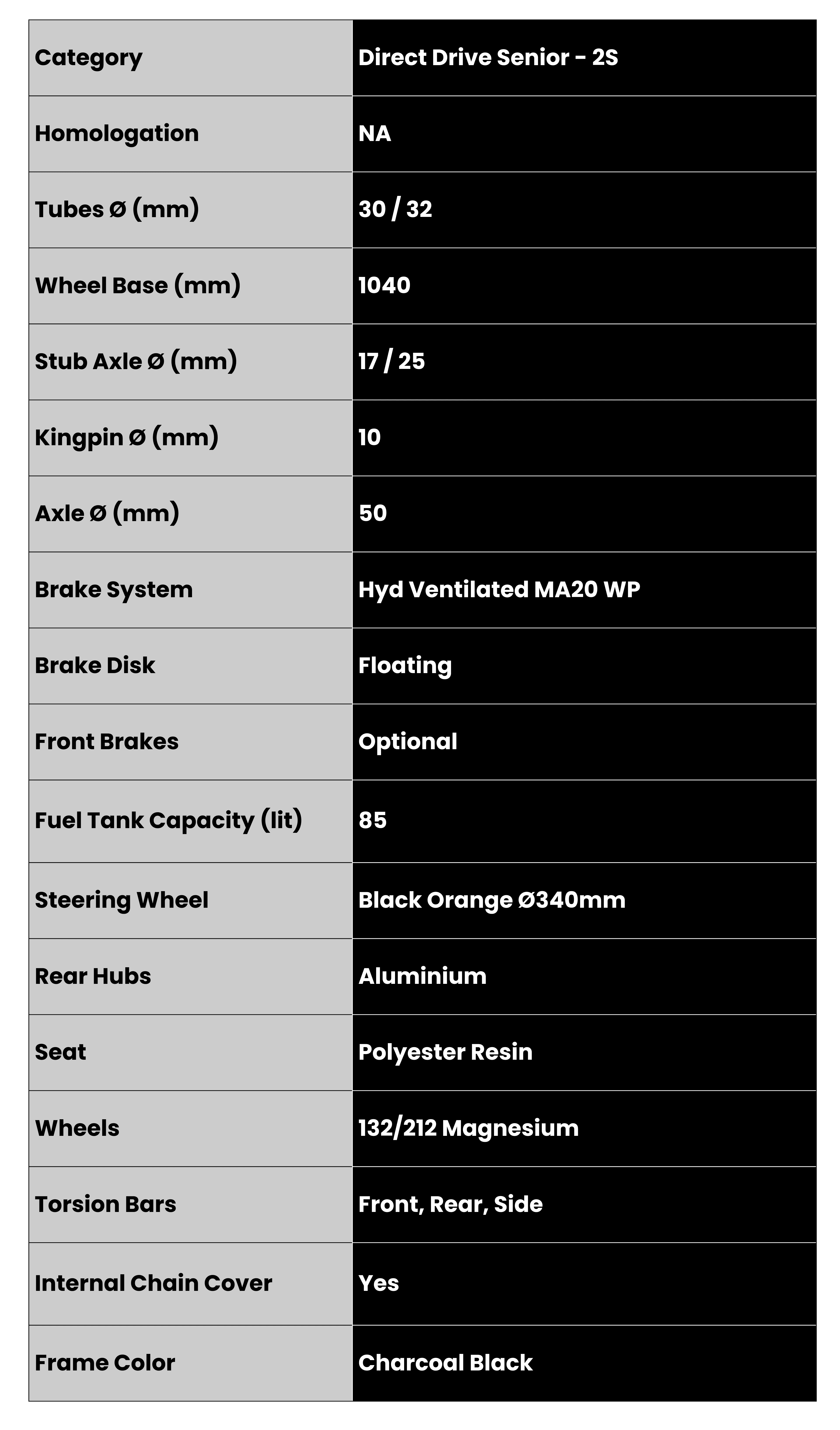 The KnK Trakhawk is a precision-engineered direct-drive kart built for senior-level 2-stroke racing. Constructed with a 30/32 mm high-tensile steel frame and a 104 cm wheelbase, it is designed for exceptional agility, durability, and balance on the track. Its 50 mm rear axle and 10 cm front stabilizing bars ensure excellent traction and handling, even under demanding race conditions. The kart’s sleek charcoal black powder-coated finish and black-orange Ø340 mm steering wheel enhance its aggressive racing appeal while maintaining the signature KNK performance standards.