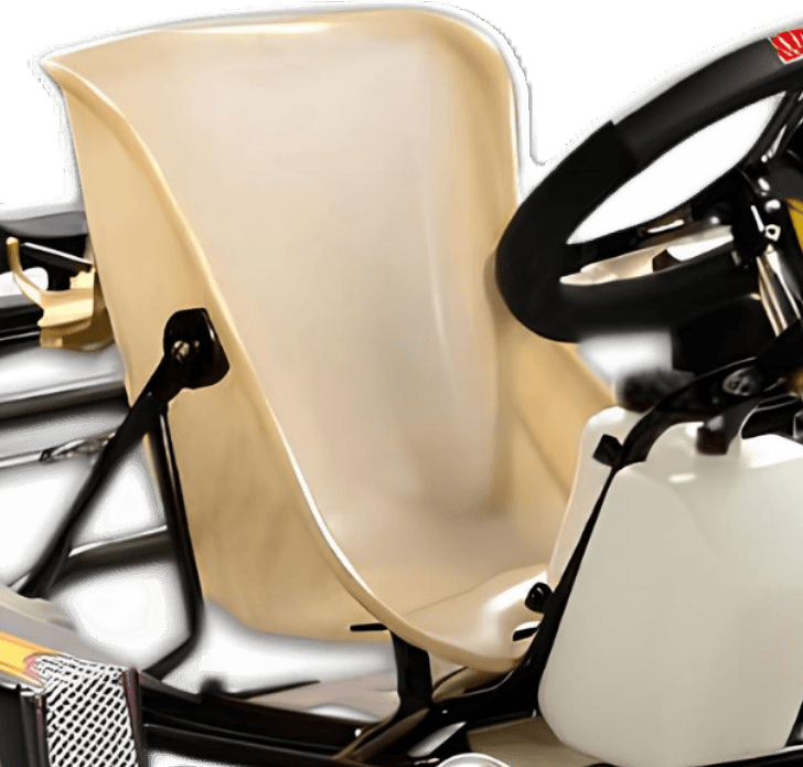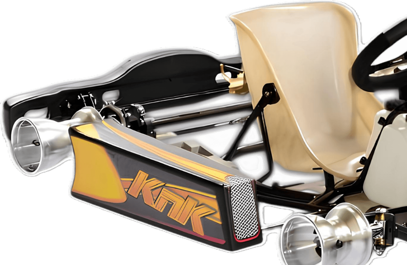 Equipped with hydraulic ventilated MA20 WP floating brakes, a 30 mm hollow rear axle, and high-quality aluminum components, the Velocity 4S ensures responsive handling and dependable braking performance. The kart features a 3.5-liter floor-mounted petrol tank, alloy wheels (132/182), and bodywork made of aluminum and polyester resin with rear and side protection. With optional 2S or 4S engine configurations, the KnK Velocity 4S is engineered to provide young drivers with the perfect blend of safety, speed, and adaptability — a true stepping stone for aspiring champions.